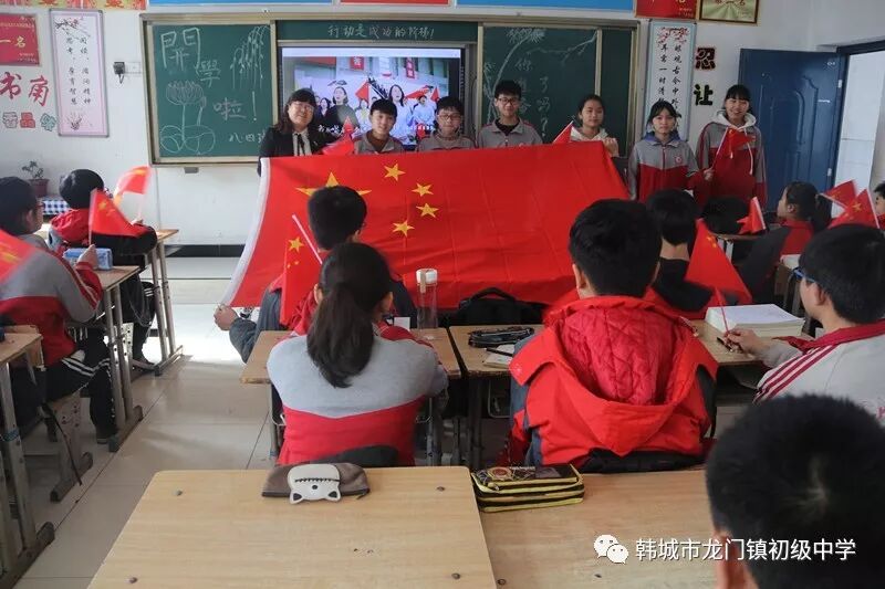 我和我的祖国,一刻也不能分割,无论我走到哪里,都流出一首赞歌……这首歌唱出了我们和祖国血脉相依的感情,更重要的是使命与担当。简单而朴实的互动,增强了凝聚力、感染力、号召力,班会在昂扬奋进的氛围中继续……。