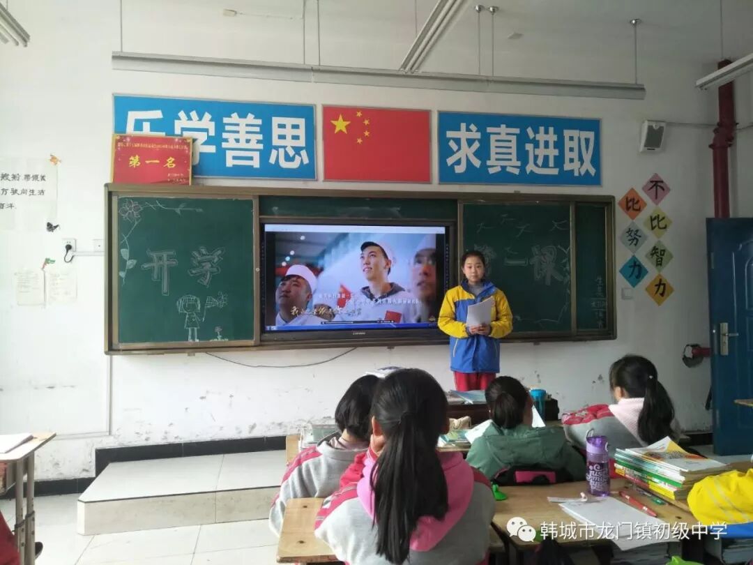 凝聚学生向心力,激发蓬勃爱国情。早上十点钟报道工作全部结束。10点10分,一曲《我和我的祖国》合唱视频,在各班教室一体机屏幕上展播。优美的旋律从各个教室飞出,师生们个个精神饱满,踏着歌声闻声而动流向教室,情不自禁的以各种形式融入到澎湃的歌声之中。写在脸上的阳光和自信,洋溢着无限的青春活力。师生们手拉着手,摇着小红旗,把对党、对祖国、对人民的热爱,对盛世中国的点赞化为积极、健康、向上的精气神,用经典唱响《开学第一课》。